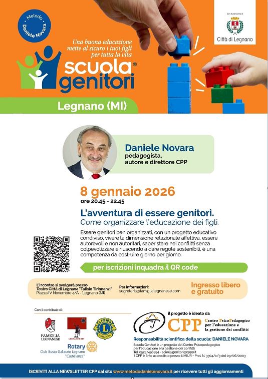 Il Comune di Legnano invita a diffondere l’iniziativa in programma per il giorno 08/01/2026 presso il teatro Città di Legnano “Tirinnanzi”, dal titolo “L’avventura di essere genitori” a cura del pedagogista Dott. Daniele Novara.