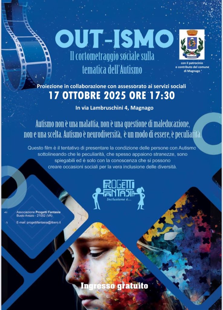 L’Associazione Progetti Fantasia APS, con il patrocinio ed il contributo del Comune di Magnago, propone “OUT-ISMO”, un cortometraggio sociale sulla tematica dell’autismo.