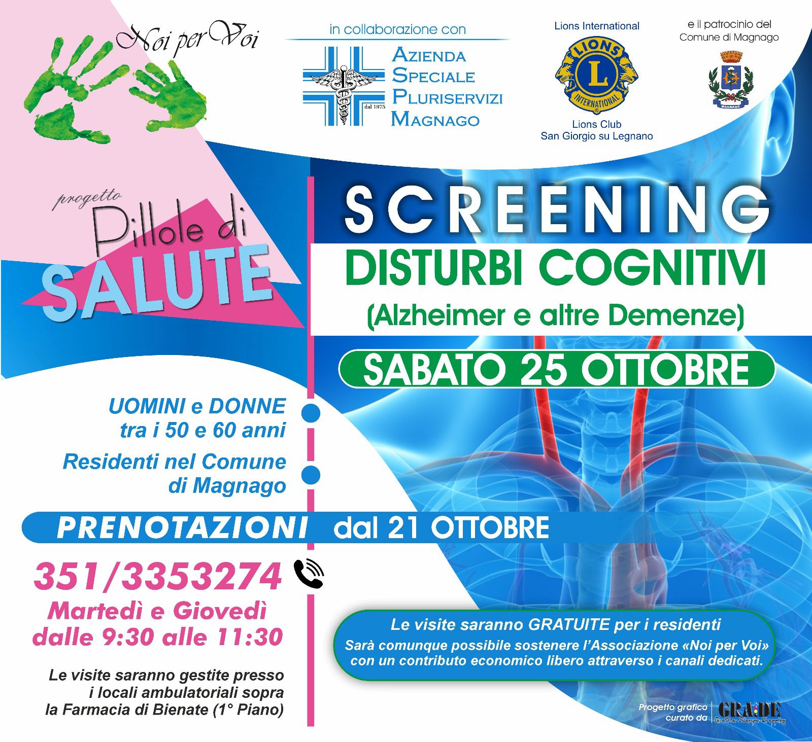 ASPM – Azienda Speciale Pluriservizi Magnago, in collaborazione con l’associazione NOI PER VOI APS ed il patrocinio del Comune di Magnago e di Lions Club San Giorgio su Legnano, propone un nuovo screening rivolto ad uomini e donne tra i 50 e 60 anni residenti a Magnago, per la prevenzione dei disturbi cognitivi.